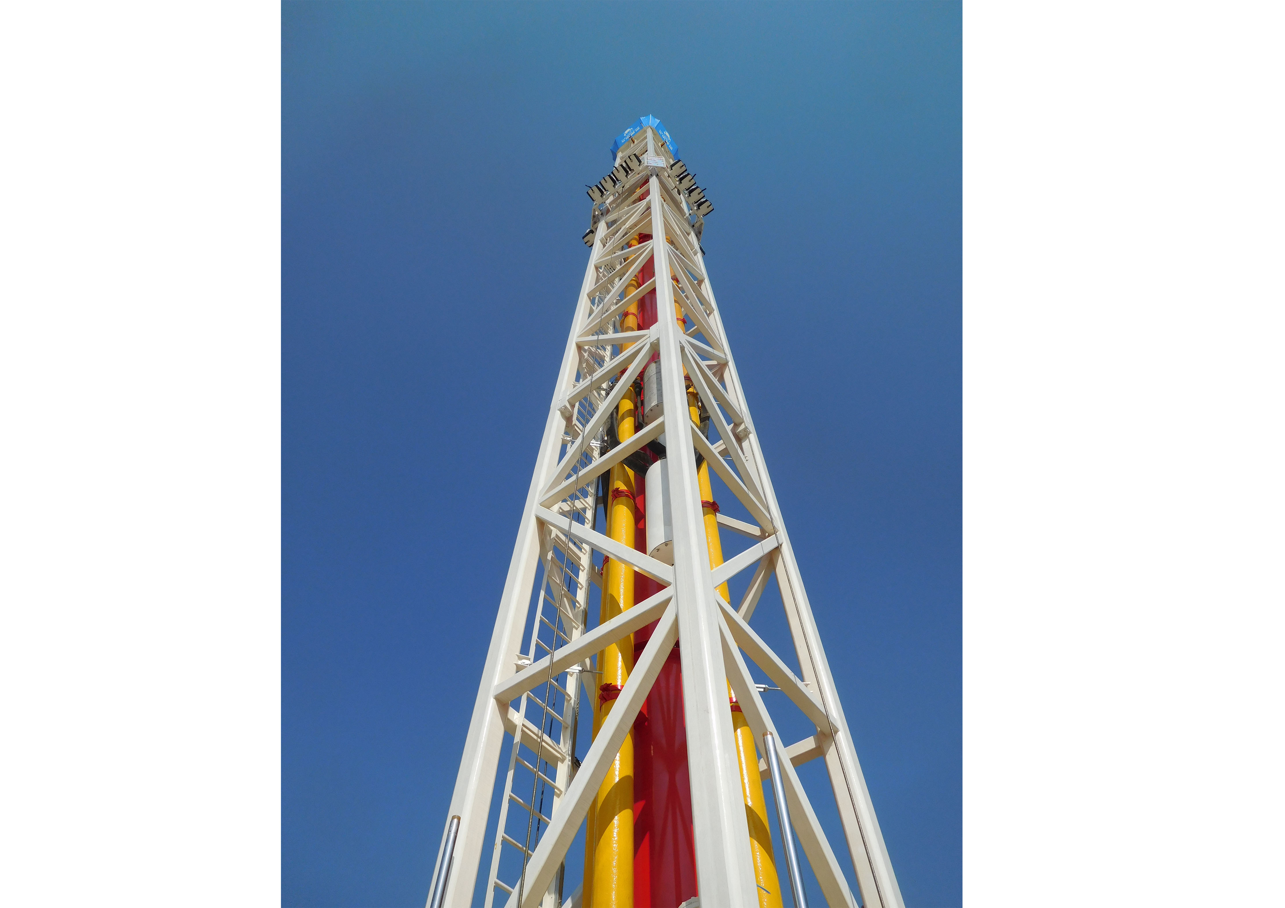设备采用全新配色,外形时尚简洁。乘坐时,乘客在极短的时间内被发射至接近塔架的顶部,紧接着,又在重力作用下疾速跌落,然后再次被空气压力弹回至塔架中部偏上的位置,最后按预设程序慢慢向下滑行,安全返回地面。整个运行时间(包括乘客上下所需时间)为3分钟左右。