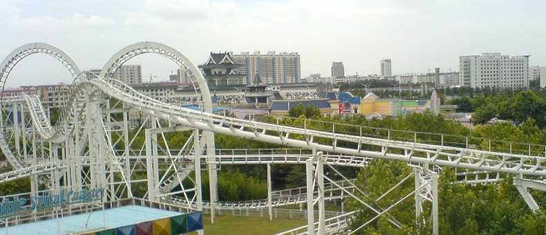 Designed and constructed by Sameco, opened in 1997, the double-loop roller coaster is the most exciting ride in Fuhua amusement park. Total length of the rail is 888 meters, it is regards as the China’s longest roller coaster rail so far. Throughout the whole rail, the highest point is in 38 meter high, the depression angle is 42 degrees. The speed is up to 90 kilometers per hour, the whole trip lasts 185 seconds. Tourists will get excited in every dive and every link .