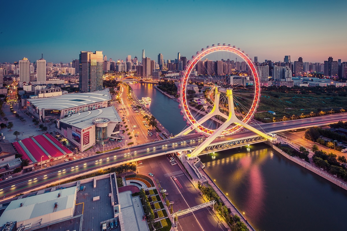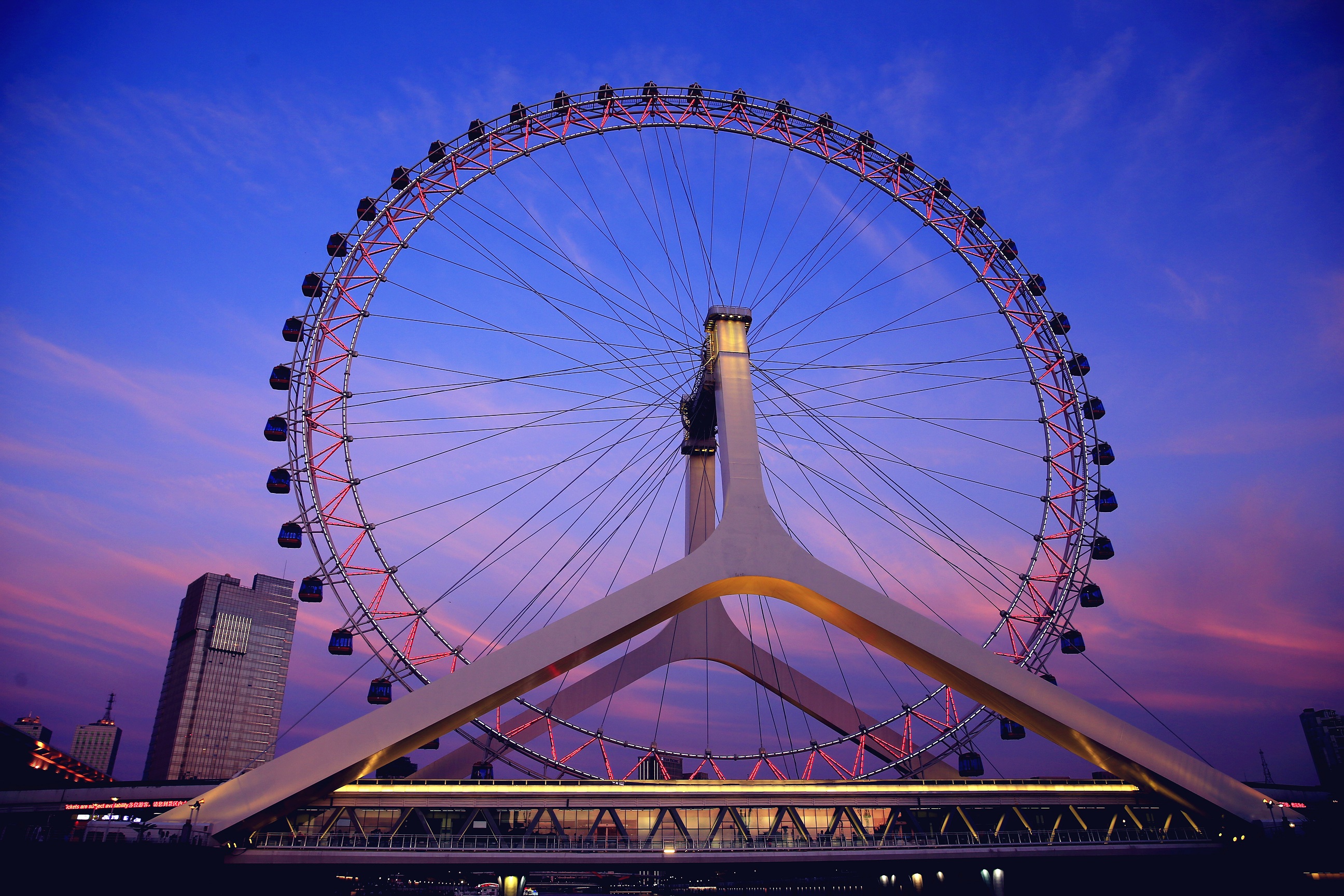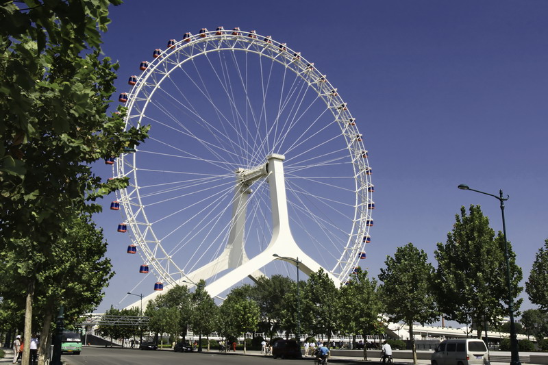 Tianjin Eye is a Ferris wheel built on the Yongle Bridge over the Hai River in Tianjin, China. It’s the world’s only Ferris wheel built on the bridge, which integrated both sightseeing and traffic function. Famous for its elegant and unique structure, it became a must-see landmark to visitors in Tianjin.