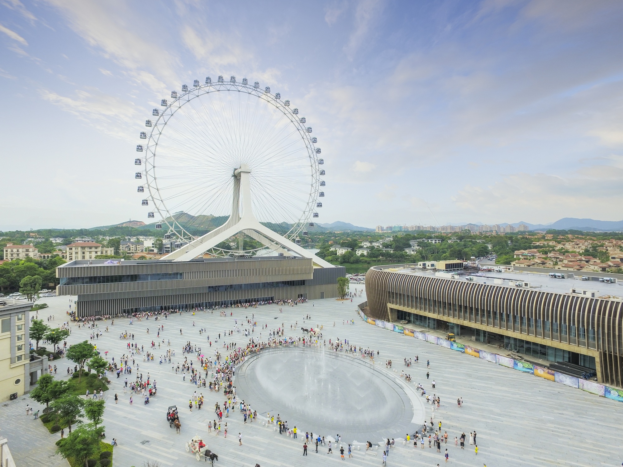 The Delight observation wheel, which officially opened on May 27th, 2015, is the new attraction in Mayland town in Qingyuan, Guangzhou. The observation wheel with 84 meters diameter is the biggest rooftop Ferris wheel in China.