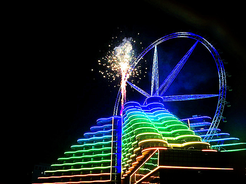 La noria Ojo de Liaocheng se encuentra a la orilla sur de la Laguna de Dongchang, un parque de clase 4A, con un área total de construcción de unos 80.000 metros cuadrados, un sótano, 13 pisos sobre el suelo, un total de 14 pisos y una altura total de 130 metros, es el primer punto de referencia urbana combinando el edifico con la noria.